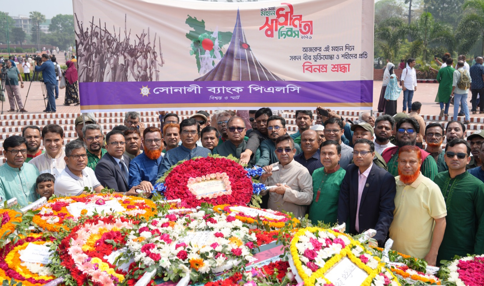 প্রেস বিজ্ঞপ্তি যথাযোগ্য মর্যাদায় মহান স্বাধীনতা ও জাতীয় দিবস-২০২৬ উদযাপন করেছে সোনালী ব্যাংক পিএলসি। ২৬ মার্চ, বৃহস্পতিবার ব্যাংকের এমডি অ্যান্ড সিইও মো. শওকত আলী খানের নেতৃত্বে সাভারে জাতীয় স্মৃতিসৌধে পুষ্পস্তবক অর্পণের মাধ্যমে জাতির শ্রেষ্ঠ সন্তান বীর শহীদদের স্মৃতির প্রতি শ্রদ্ধা নিবেদন করা হয়। এসময় ব্যাংকের ডেপুটি ম্যানেজিং ডিরেক্টরবৃন্দ, জেনারেল ম্যানেজারসহ অন্যান্য নির্বাহী ও কর্মকর্তা-কর্মচারীরা উপস্থিত […]